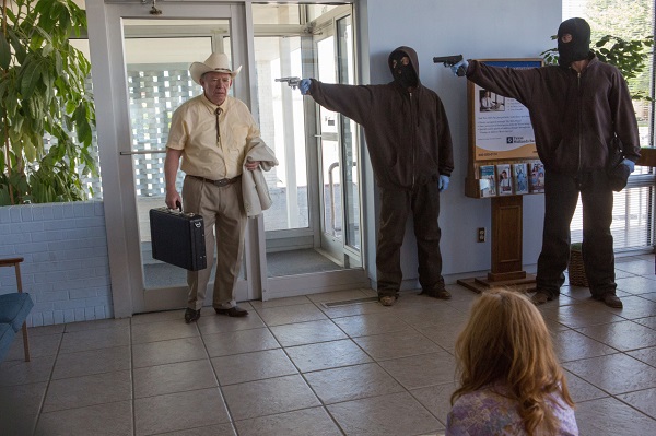 One or the funny reoccurring themes is the film is what happens when you try to rob banks in Texas and everyone has guns. It makes armed robberies problematic. The other problematic thing is how brilliant the bank robbery plan was. It’s really well thought out and orchestrated. Toby’s plan may give people ideas.